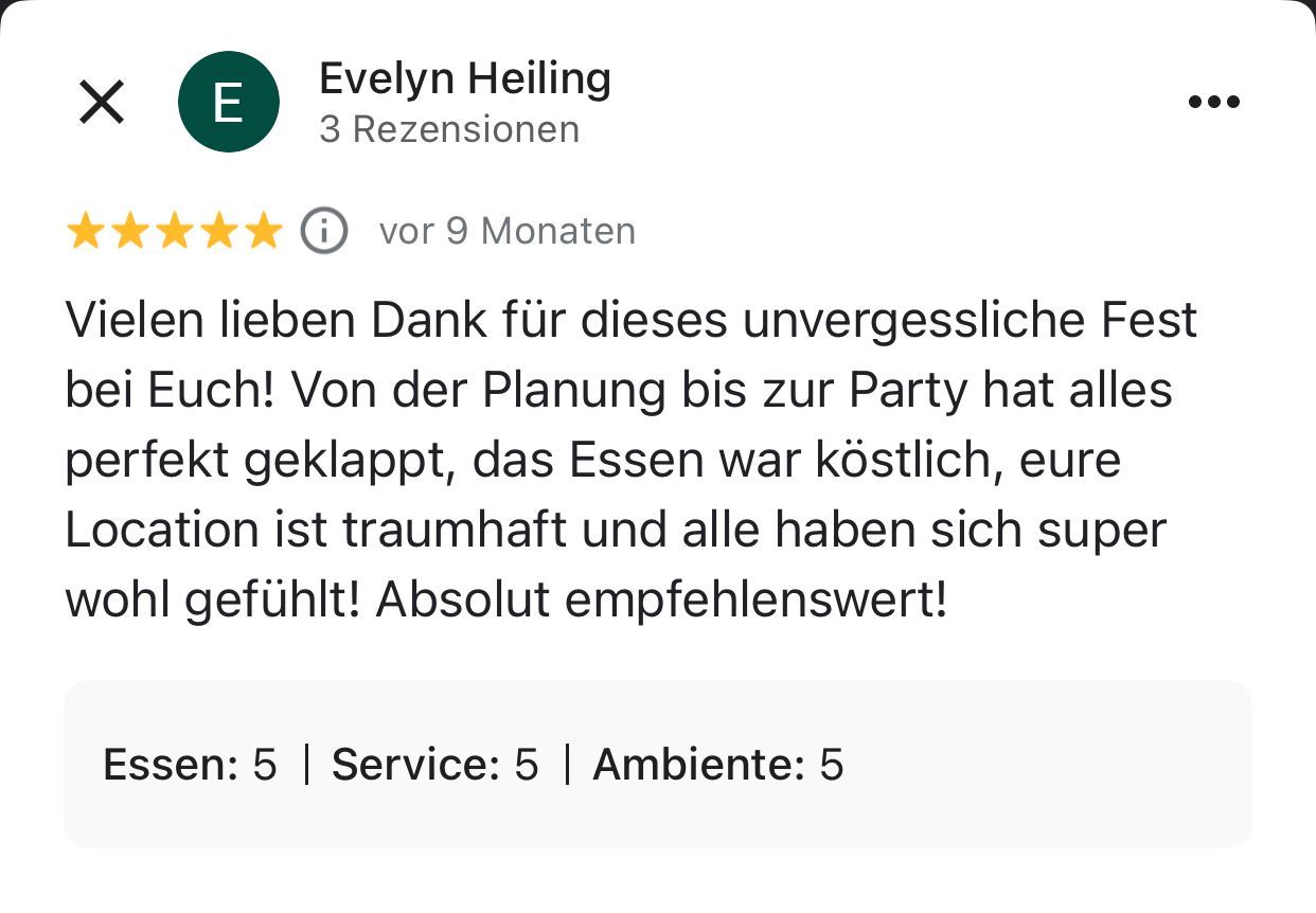 Exklusiv ab 35 Gäste – keine Raummiete